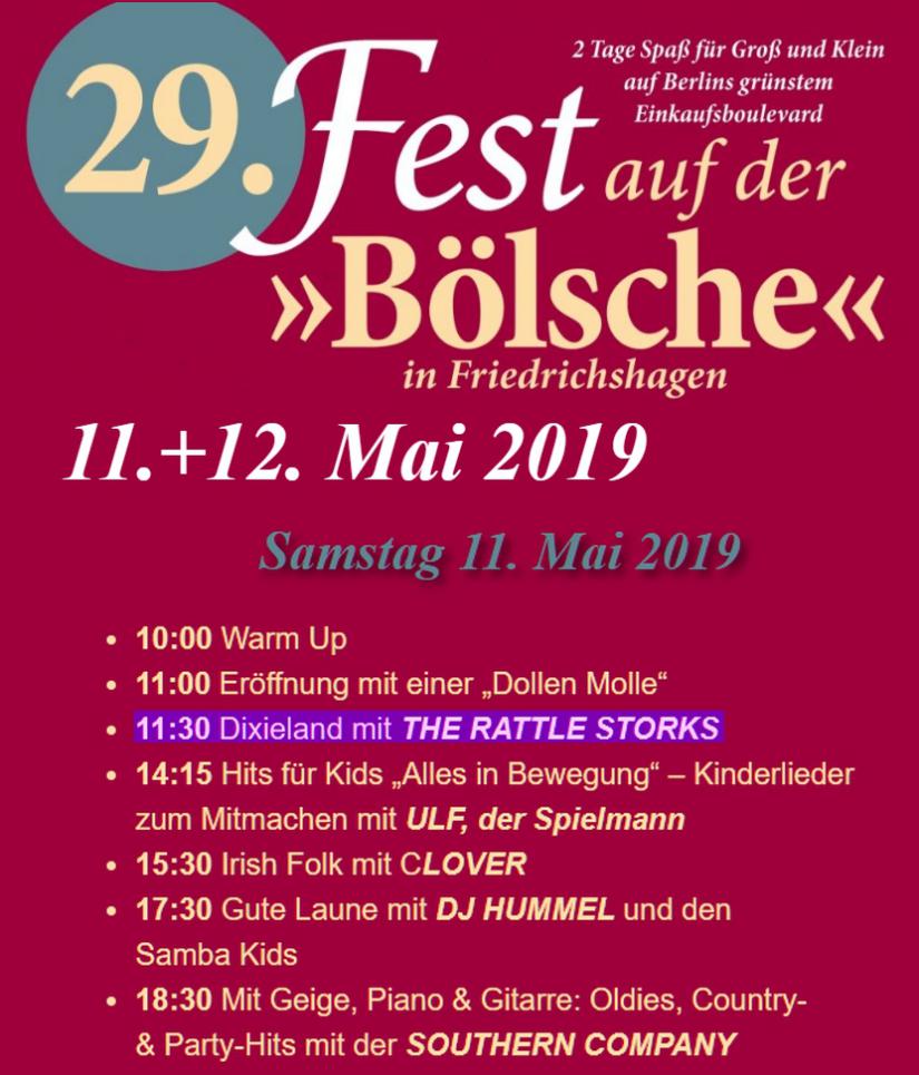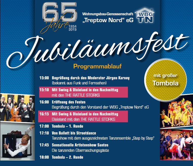 Fröhliche Dixielandklänge sind am Freitag den 14. Juni 15 bis 17 Uhr in der Erich Lodemannstraße 85, zu höen. Die Wohnungsgenossenschaft Johannisthal e.G. feiert ihr 65jähriges Bestehen.